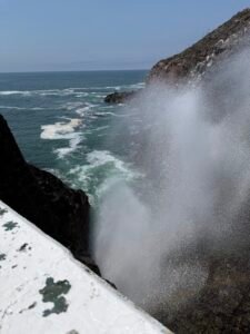 La Bufadora, located 17 miles south of Ensenada on the Punta Banda Peninsula, is one of North America’s largest marine geysers, shooting water over 100 feet in the air. Formed by coastal erosion creating a sea cave, it produces a distinct sound and high-pressure spout. Local legend tells of a baby whale trapped in the rocks, which turned to stone while calling for its family.